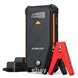 Power Bank and LCD Screen? This car battery starter also serves as a power bank with a capacity of 23800 mAh, equipped with 2 USB ports and a USB Type-C charging port (5 V/3 A). You can charge multiple devices simultaneously.The large ultra-clear screen displays the real-time battery percentage and intuitively shows input and output power. LED Light and Compact Design? The car battery booster comes with a bright LED flashlight featuring 3 lighting modes: flashlight, strobe, and SOS light. It is compact and comes with a storage box that can fit in your pocket, backpack, or suitcase, making it very convenient to use and a great companion for camping, travel, outdoor activities, everyday situations, or emergencies. The ACMOUNT car battery starter has 10 intelligent safety protections against short circuits, reverse connections, over-voltage, sparks, etc.